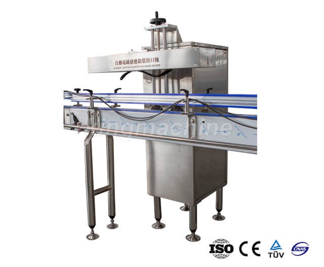 Эта машина основана на принципе электромагнитной индукции, которая может передавать сверхвысокую частоту в индуктивную головку, переменный ток для создания высокочастотного переменного магнитного поля через катушку, алюминиевая фольга в колпачках может чувствовать магнитное поле, что вызывает вихревой ток, и благодаря специальному контролю, на данный момент при высокой температуре, композитная пленка из алюминиевой фольги плавится и быстро склеивается с горлышком тары, что обеспечивает высокую эффективность и высокое качество герметизации.