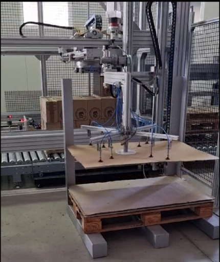 Автоматический паллетизатор модель ROBOPALLET 61 для укладки коробов на паллет.