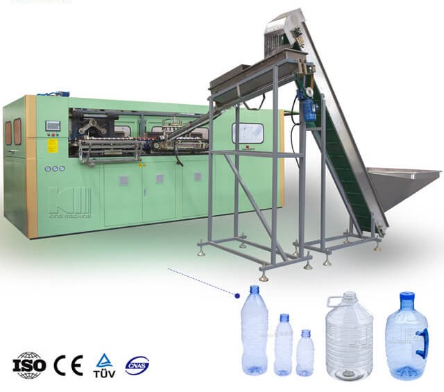 Линейная выдувная машина имеет 3 типа, один на 4,6,8 соответственно с производительностью 4000-8000 BPH. Он имеет следующие преимущества: управление интерфейсом человек-машина, простота в эксплуатации; автоматическая загрузка и расшифровка преформ; бункер для преформ; стабильное выравнивание преформ, загрузка преформ в соответствии с емкостью; плотная структура, низкая контаминация. система обогрева преформ; преформы равномерно нагреваются, легко выдуваются и т. д. ПЛК будет защищать и контролировать процесс продувки машины.