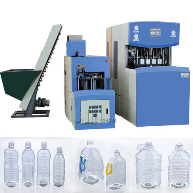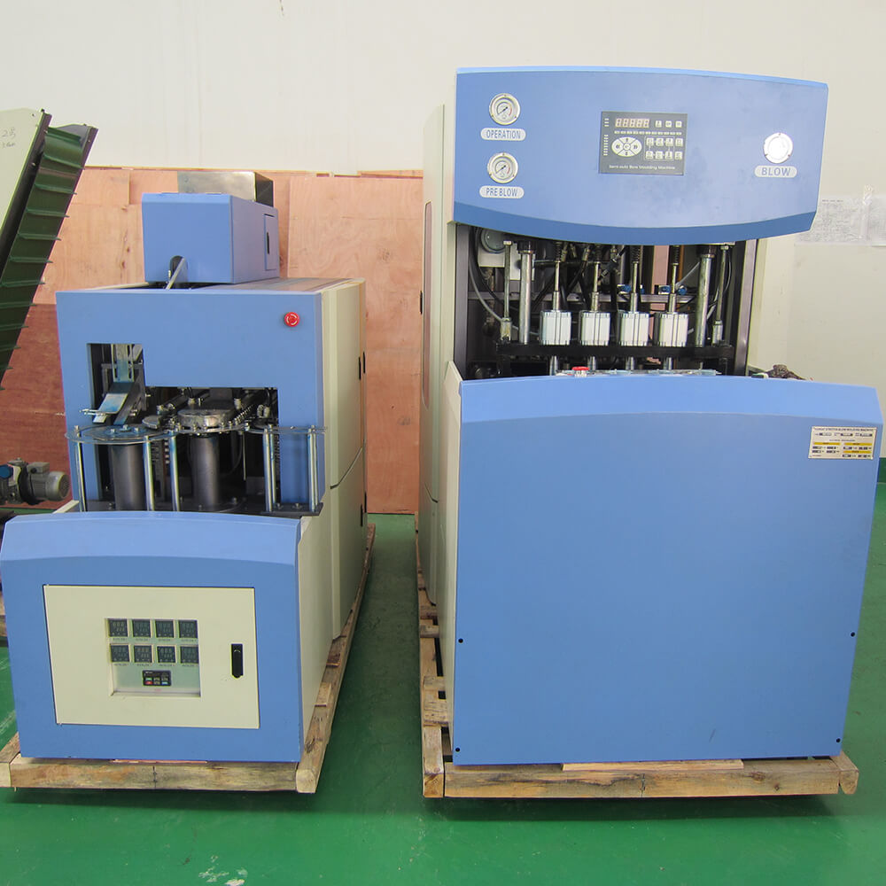 Полуавтоматическая машина для выдувания ПЭТ-бутылок с микрокомпьютерной системой управления. Машина более точно и стабильно контролирует различные технические параметры. Только один человек без специальной подготовки управляет машиной.