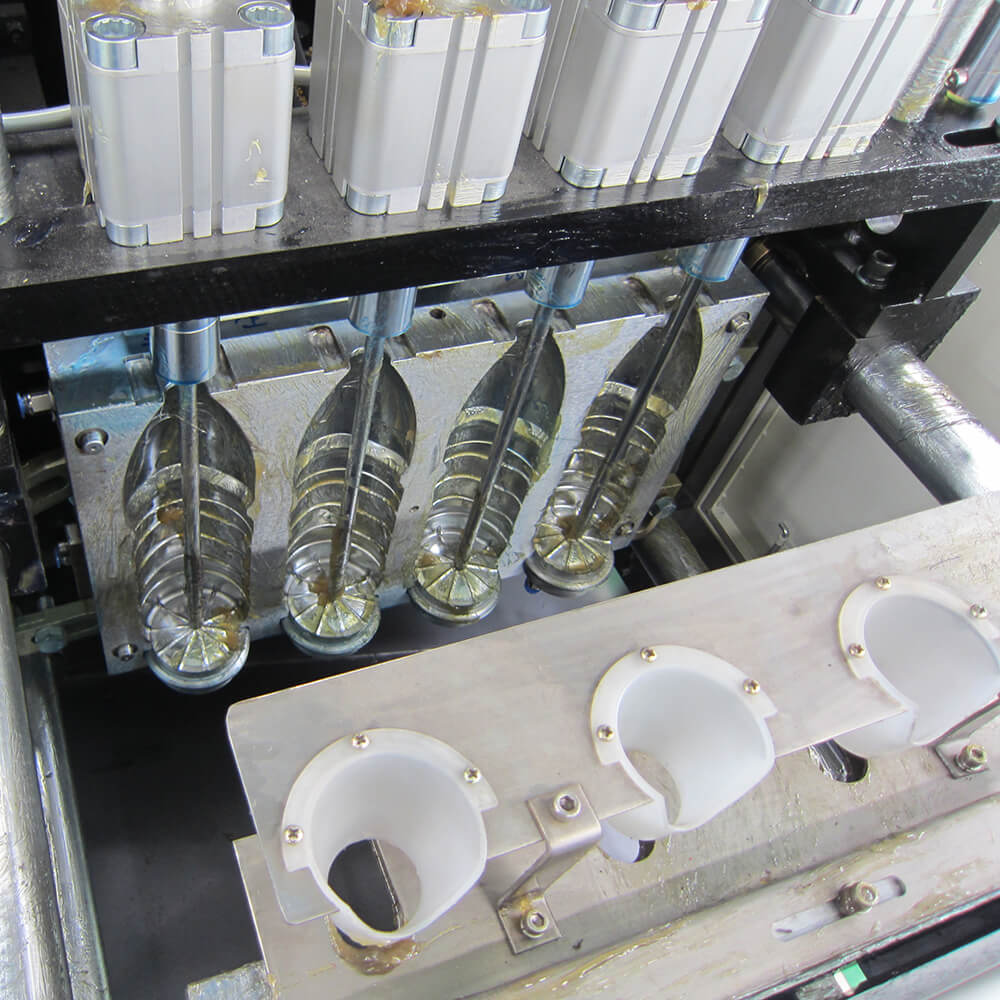 3)Самовращение преформы и вращение инфракрасного предварительного нагревателя обеспечивают равномерное распределение тепла, что улучшает скорость формовки бутылок и увеличивает производительность.